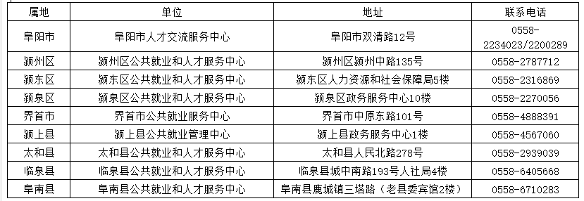 阜陽市各級人社部門經(jīng)辦高校畢業(yè)生就業(yè)創(chuàng)業(yè)業(yè)務聯(lián)系方式