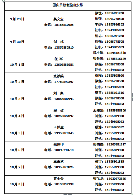 (一)值班地點(diǎn)及值班人員電話:見附件。