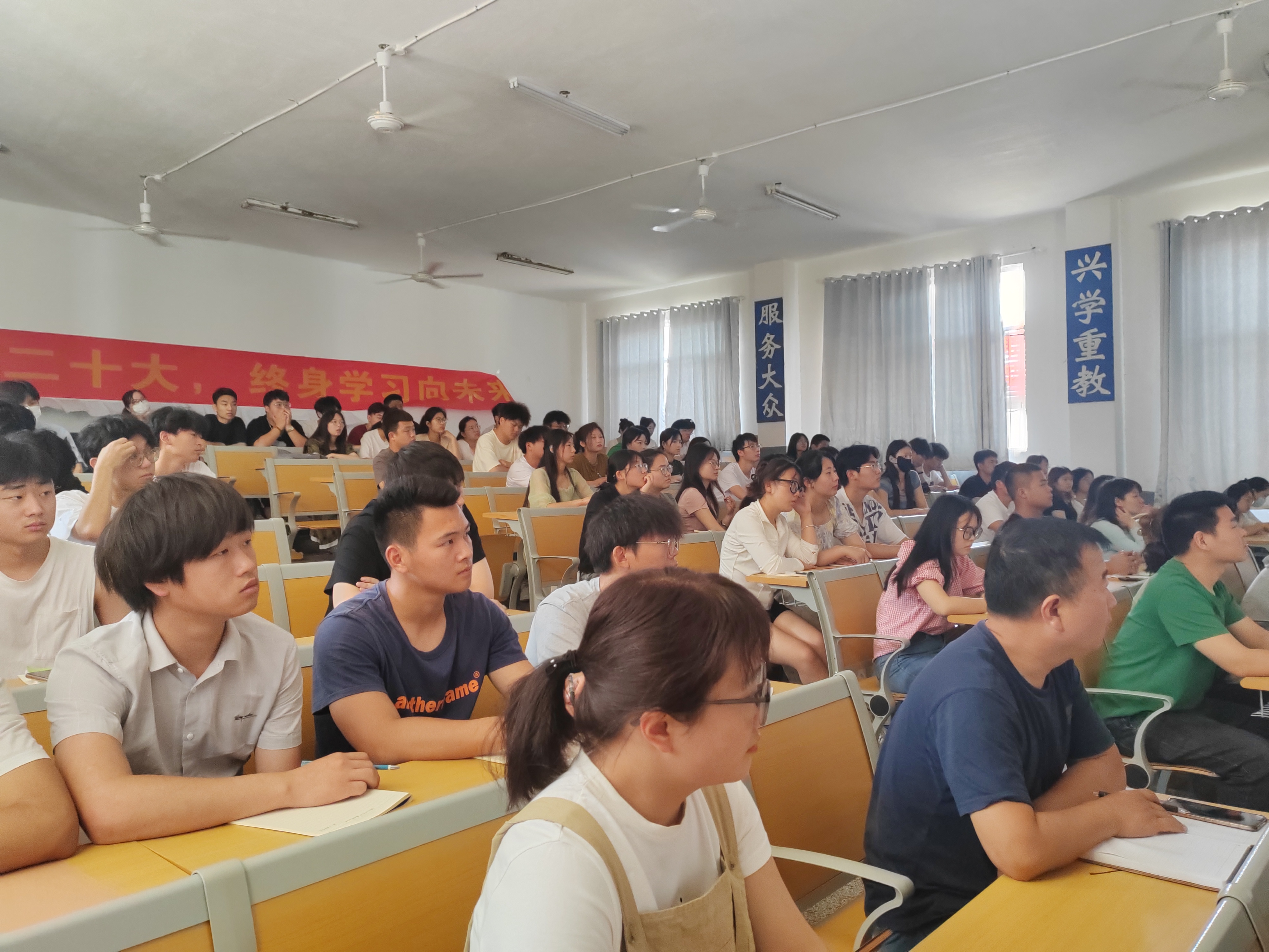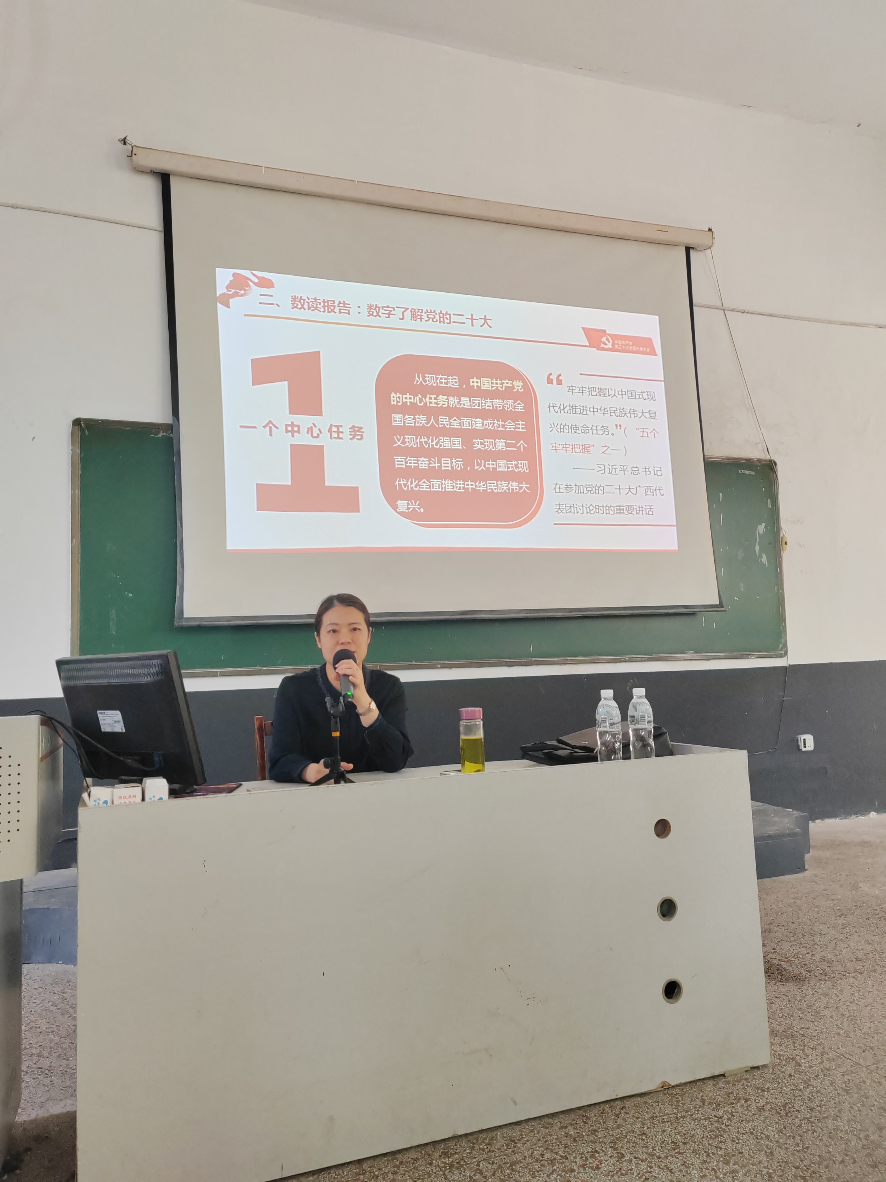 為深入學(xué)習(xí)宣傳貫徹黨的二十大精神,教育廣大師生堅(jiān)定不移聽黨話、跟黨走,立志做有理想、剛擔(dān)當(dāng)、能吃苦、肯奮斗的新時(shí)代好青年。6月9日上午9點(diǎn),安徽省委講師團(tuán)青年宣講名師,安徽省高校師生巡講團(tuán)成員、阜陽市委宣講團(tuán)成員、阜陽市委宣講團(tuán)成員何麗娜教授在我校東階多媒體教室進(jìn)行了一場(chǎng)題為“思想偉力領(lǐng)航向 肇畫復(fù)興新藍(lán)圖”黨的二十大精神分享的報(bào)告會(huì)。學(xué)院黨總支書記鄒斌等院領(lǐng)導(dǎo)及部分黨員、發(fā)展對(duì)象、入黨積極分子參加了本次報(bào)告會(huì)。