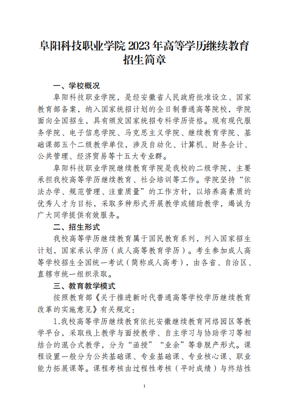 文件下載:阜陽科技職業(yè)學院2023年高等學歷繼續(xù)教育招生簡章/upload/file/20230725/20230725095432_99974.pdf