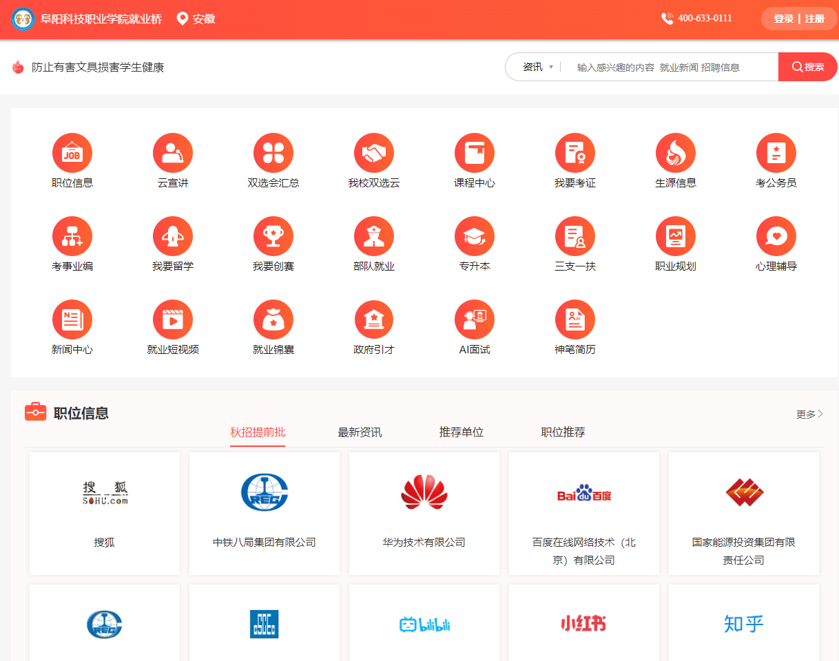 阜陽(yáng)科技職業(yè)學(xué)院專屬就業(yè)橋上線啦!