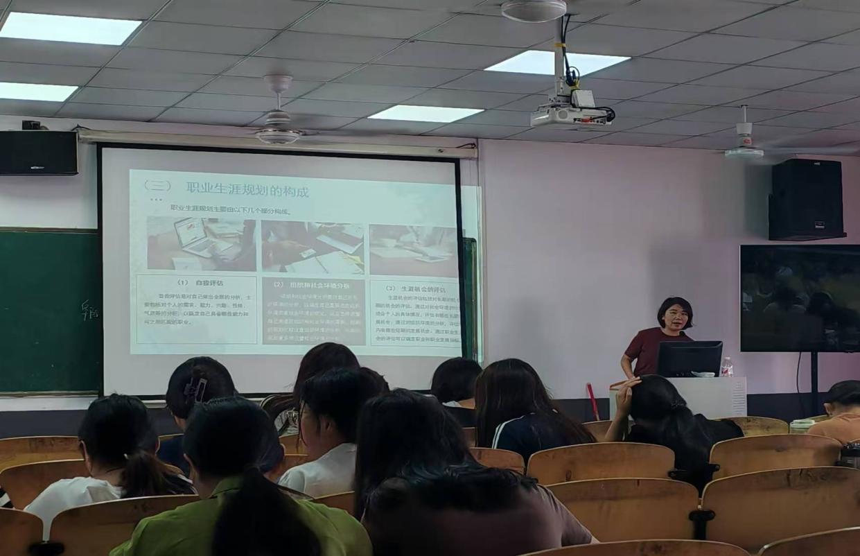 活動中,指導教師李倩講解當前就業(yè)形勢和行業(yè)發(fā)展趨勢。圍繞“如何在不斷變化的職場環(huán)境中定位自我”、“如何利用現有資源進行有效職業(yè)生涯規(guī)劃”以及“創(chuàng)新與創(chuàng)業(yè)的路徑選擇”等主題進行了深入淺出的講解。