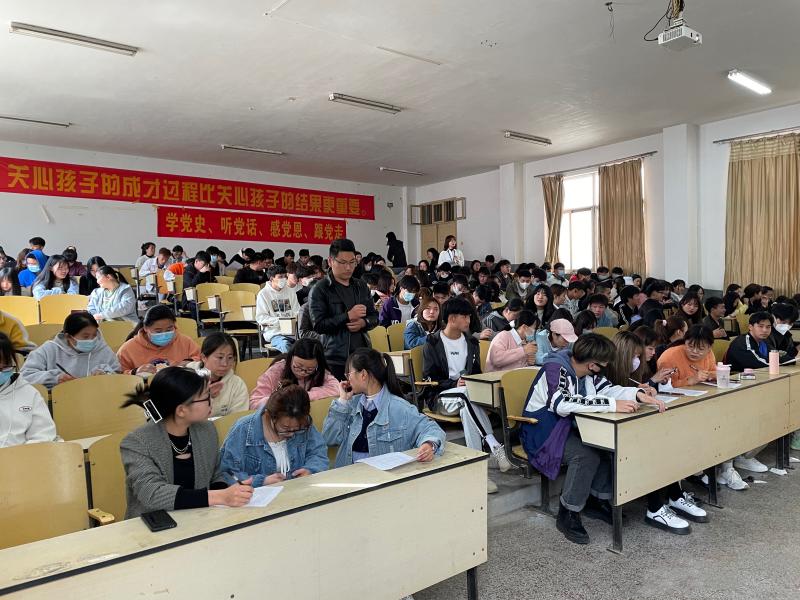 為貫徹《教育部關(guān)于配合做好〈全國大學(xué)生黨史知識(shí)競答大會(huì)〉云答題有關(guān)工作的通知》精神,2021年3月24日下午2:30,我院在西階梯教室舉辦2021屆“學(xué)黨史、聽黨話、感黨恩、跟黨走”黨史知識(shí)云競賽?;顒?dòng)由學(xué)生處及各輔導(dǎo)員共同組織。